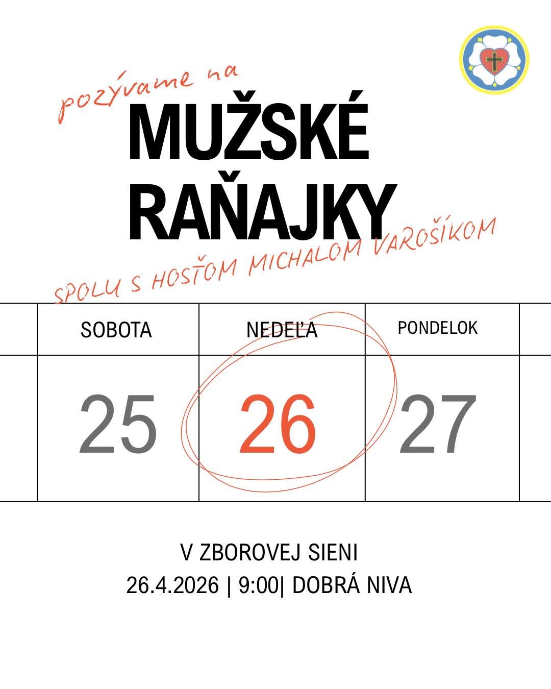 nedeľa 26. 4. 2026 o 9.00 h, Zborový dom Dobrá Niva
